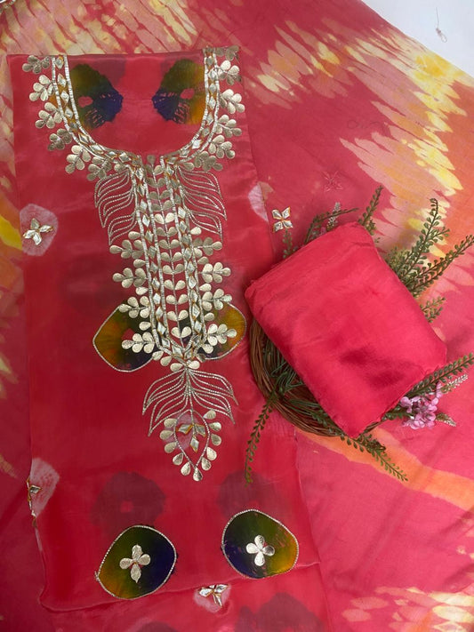 Chiffon Pink with Red Suit Fabric / Phoolon Ka Ghar