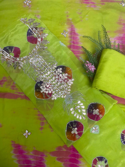 Organza Green With Dark Green Suit Fabric / Festive Vibe