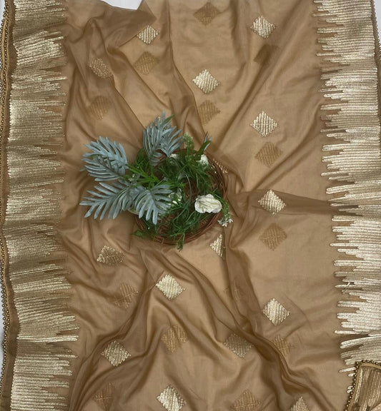 Chiffon Orange with Brown Suit Fabric / Phoolon Ka Ghar