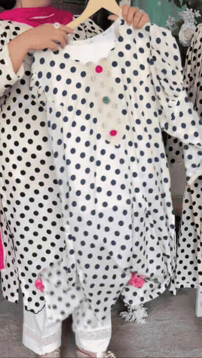 Cotton Cream With Black Stitched Suit / Polka Petals