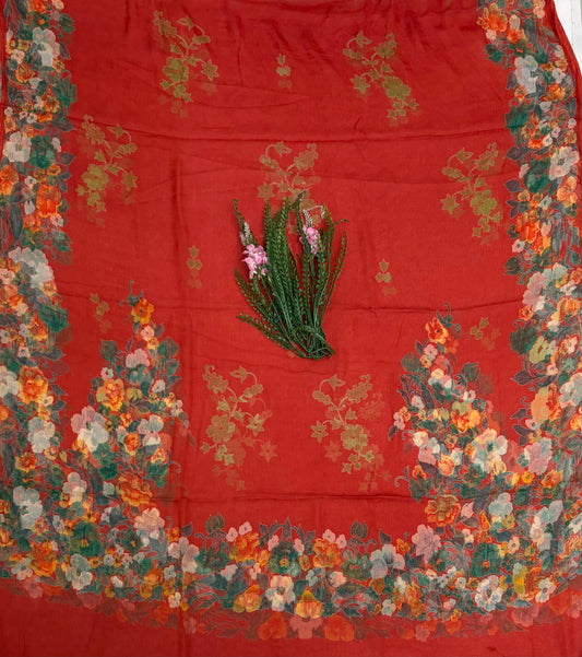 Chiffon Red Suit Fabric / Phoolon Ka Ghar
