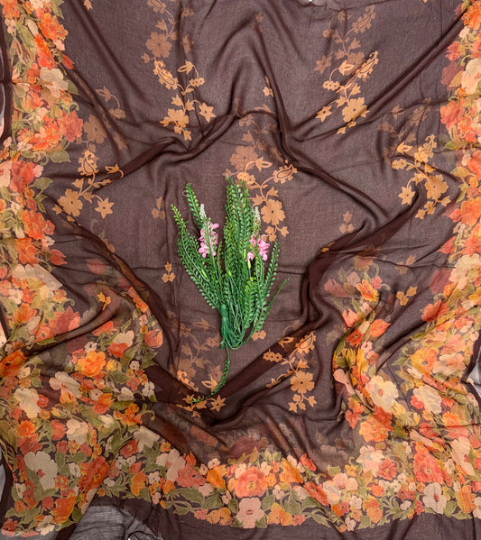 Chiffon Brown Suit Fabric / Phoolon Ka Ghar