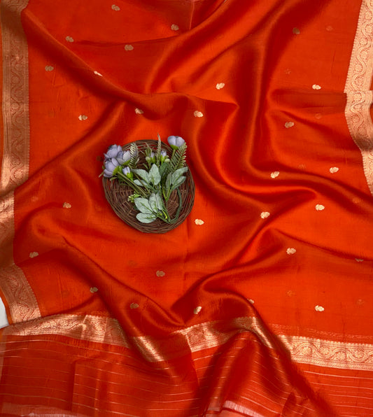 Pure Raw Silk Orange Suit Fabric / Banarasi Baithak