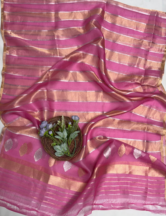 Pure Raw Silk Pink Suit Fabric / Banarasi Baithak