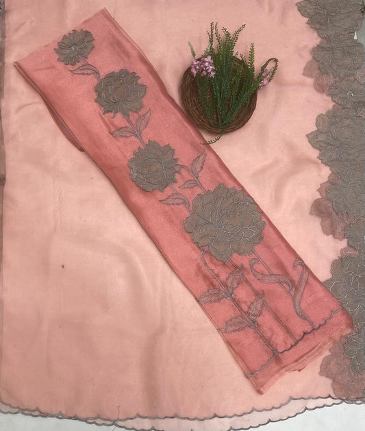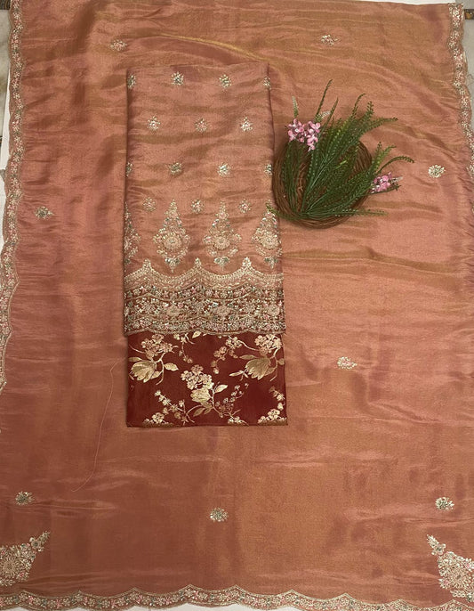 Shimmer Organza Peach With Skin Suit Fabric/ Karwachauth Collection