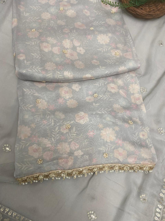 Shimmer Grey With Navy Blue Suit Fabric/ Karwachauth Collection