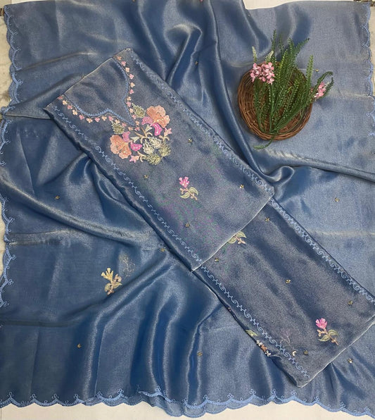 Shimmer Organza Peacock Blue Suit Fabric/ Karwachauth Collection