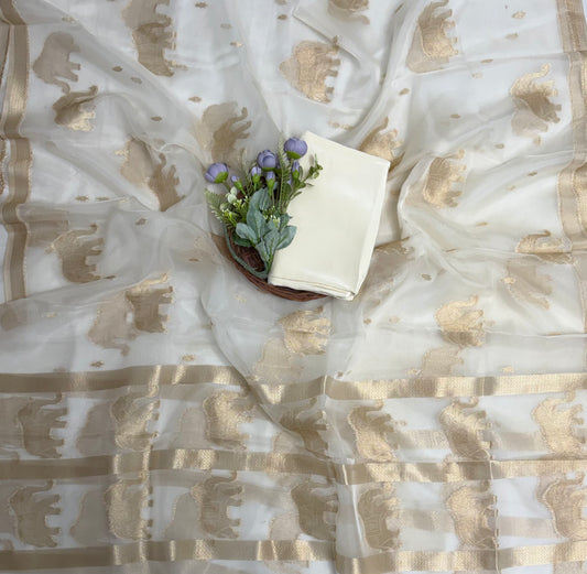 Brocade Off White Suit Fabric / Banarasi Baithak
