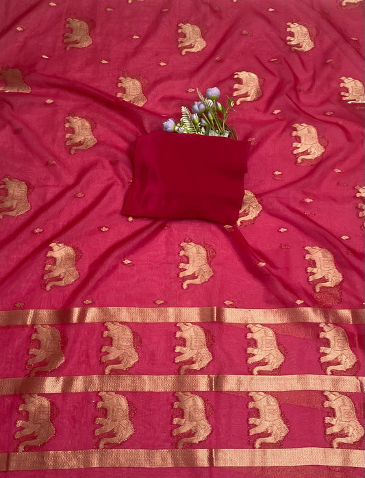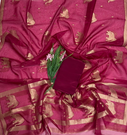 Banarasi Khaddi Georgette Hot Pink Suit Fabric / Banarasi Baithak