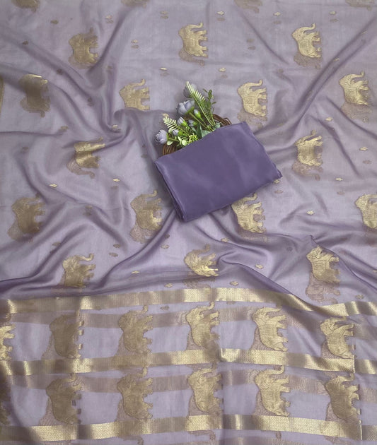 Georgette Banarasi Lilac Suit Fabric / Banarasi Baithak