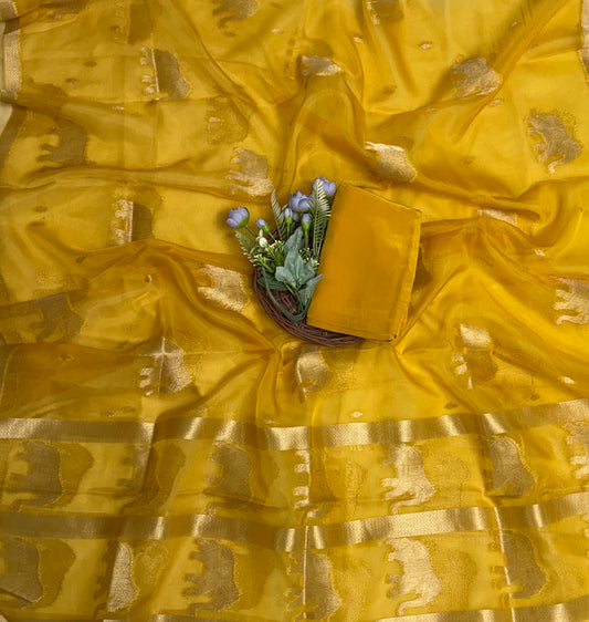 Brocade Yellow Suit Fabric / Banarasi Baithak