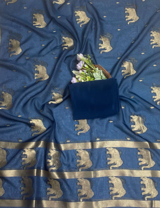 Brocade Navy Blue Suit Fabric / Banarasi Baithak