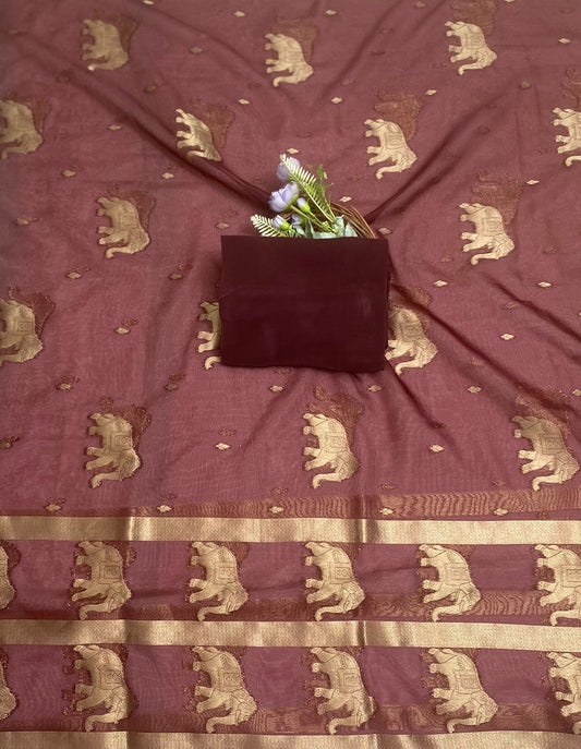 Brocade Dark Brown Suit Fabric / Banarasi Baithak