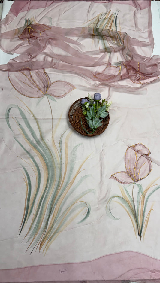 Crepe Pink Suit Fabric/ Hand Painted Suits