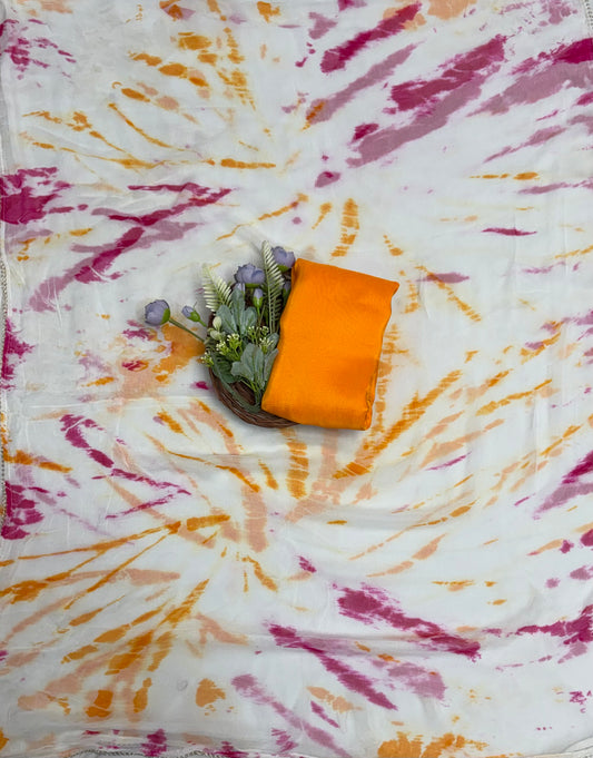 Jaipuri Cotton Magenta With Orange Suit Fabric / Jaipuri Suits