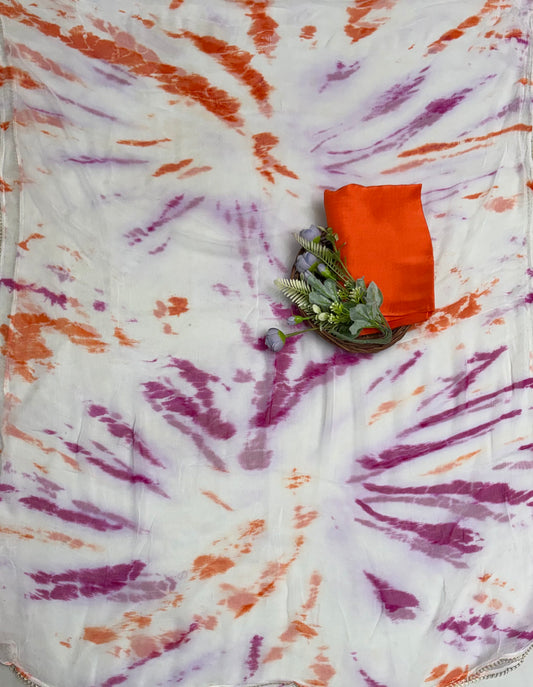 Jaipuri Cotton Purple With Orange Suit Fabric / Jaipuri Suits