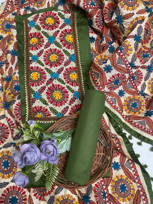 Jaipuri Crepe Dark Green Suit Fabric / Jaipuri Suits