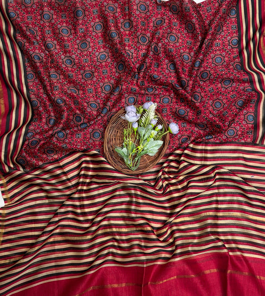Pure Maheshwari Red Suit Fabric / Maheshwari Suits