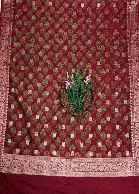 Pure Maheshwari Maroon Suit Fabric / Maheshwari Suits