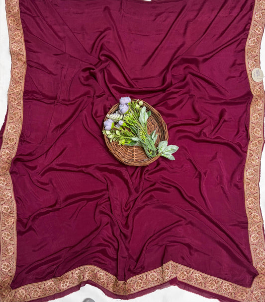 Pure Khaddi Georgette Majenta Dupatta Fabric / Banarasi Baithak