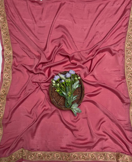 Pure Khaddi Georgette Pink Dupatta Fabric / Banarasi Baithak