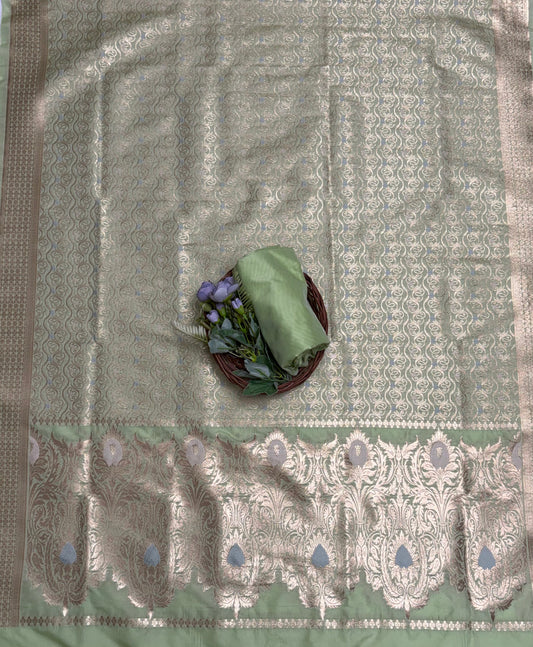 Pure Khaddi Georgette Pista Green Suit Fabric / Banarasi Baithak