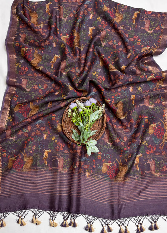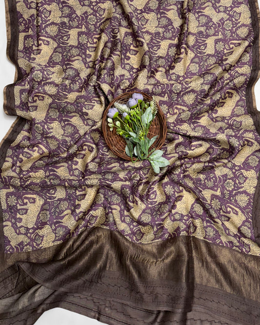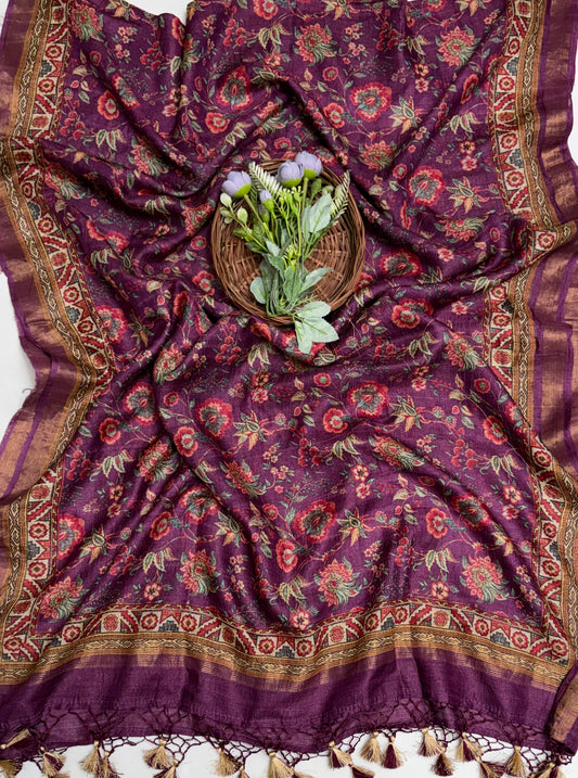 Pure Tassar Silk Purple Wine Suit Fabric / Banarasi Baithak