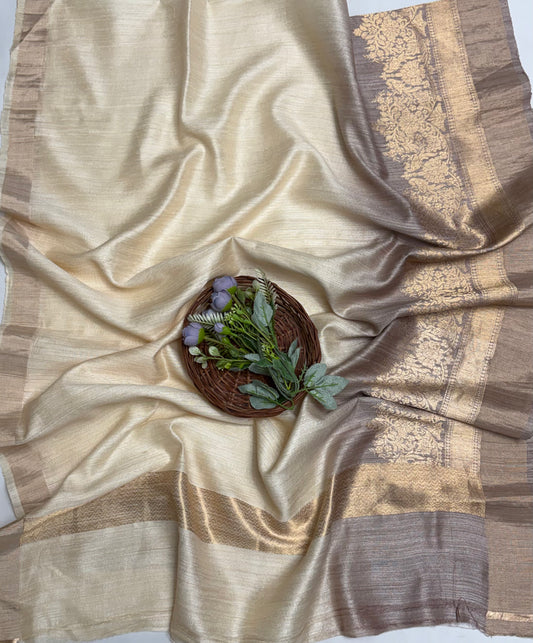 Pure Munga Silk Light Golden Beige Dupatta Fabric / Banarasi Baithak