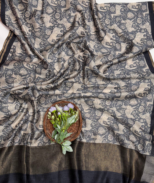 Pure Munga Silk Black Suit Fabric / Banarasi Baithak