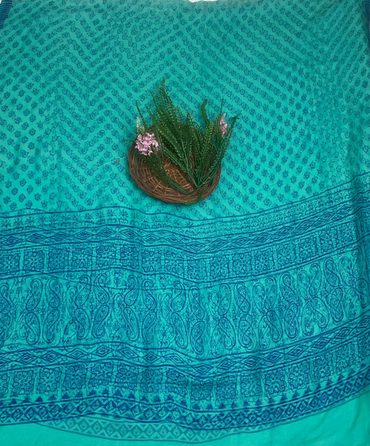 Crepe Sea Green Suit Fabric / Phoolon Ka Ghar