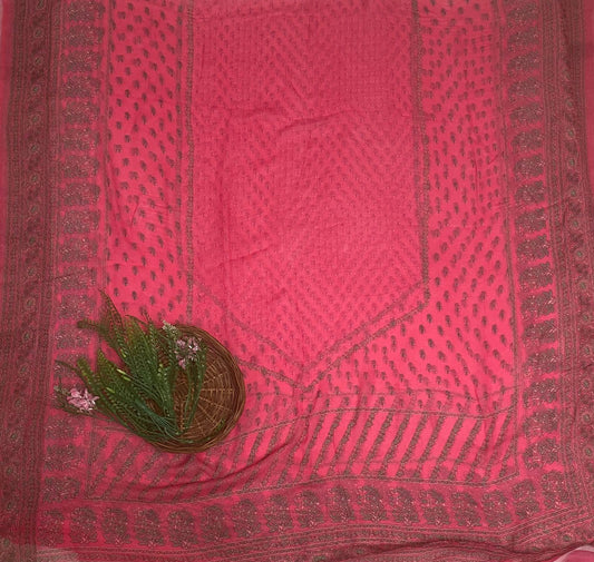 Crepe Pink Suit Fabric / Phoolon Ka Ghar