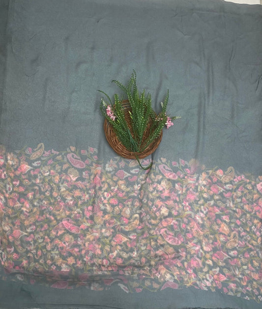 Crepe Grey Suit Fabric / Phoolon Ka Ghar
