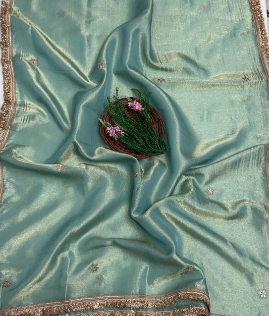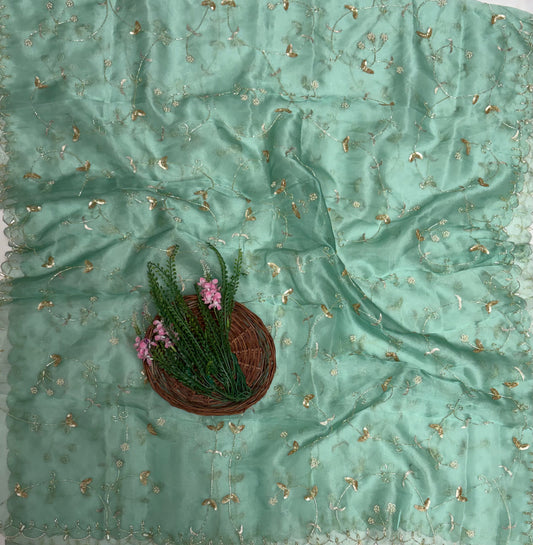 Shimmer Organza Pista Green Suit Fabric / Partywear Collection