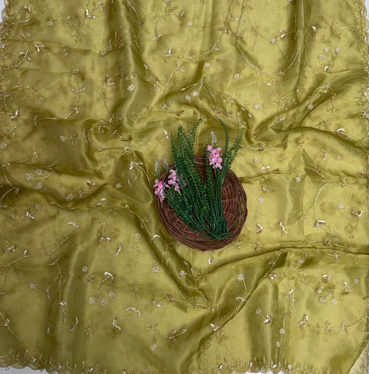Satin Organza Mustard Suit Fabric / Partywear Collection