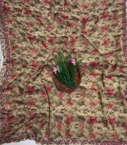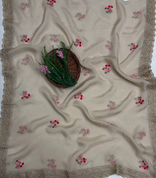 Georgette Cream With Yellow Stitched Suit / Summer Floral