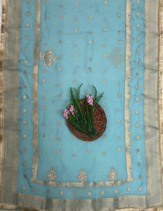 Banarasi Organza Sky Blue Suit Fabric / Partywear Collection