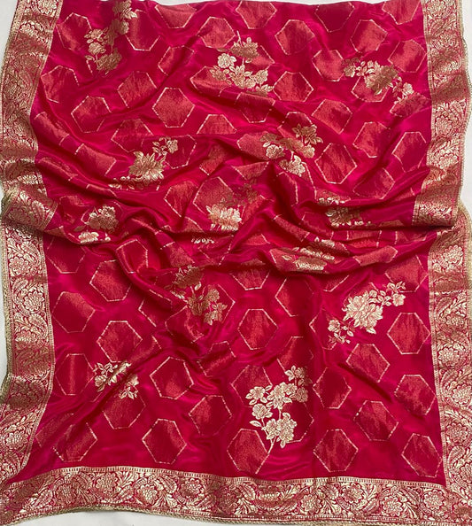 Uppada Silk Hot Pink Suit Fabric / Festive Vibe