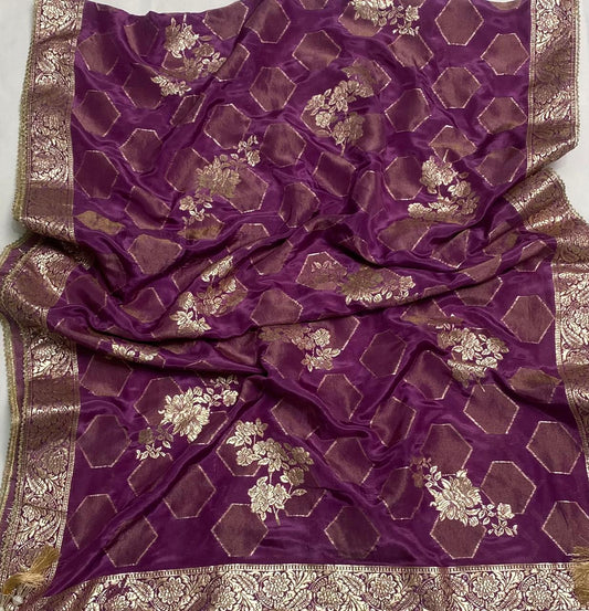 Satin Modal Purplish Wine Suit Fabric / Phoolon Ka Ghar