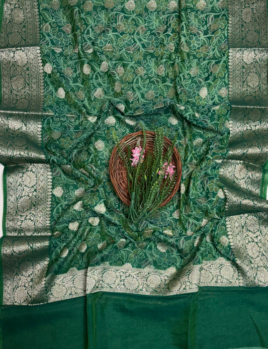 Organza Green With Dark Green Suit Fabric / Festive Vibe