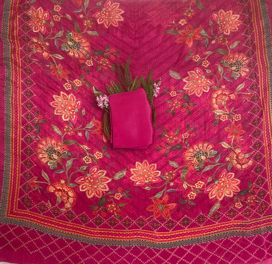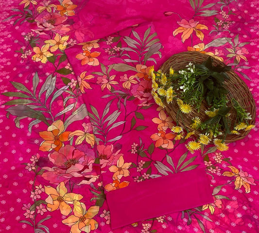 Crepe Magenta Suit Fabric / Phoolon Ka Ghar