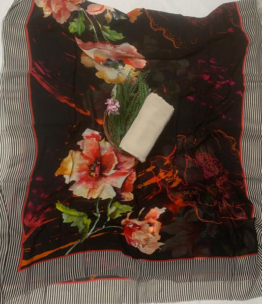 Georgette Black And Cream Suit Fabric / Phoolon Ka Ghar