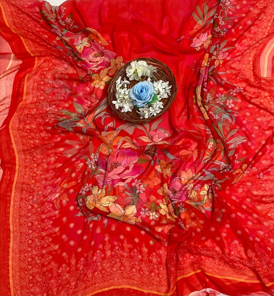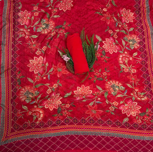 Crepe Red Suit Fabric / Phoolon Ka Ghar