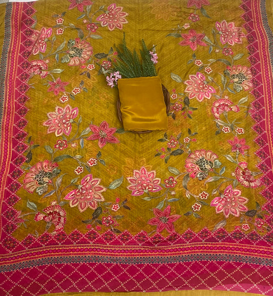 Crepe Mustard Suit Fabric / Phoolon Ka Ghar