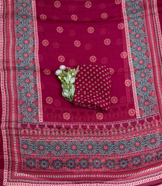 Satin Modal Burgundy Suit Fabric / Phoolon Ka Ghar