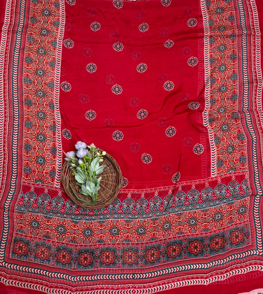 Satin Modal Red Suit Fabric / Phoolon Ka Ghar