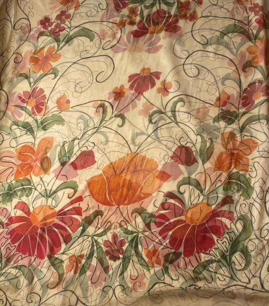 Crepe Orange With Black Suit Fabric / Phoolon Ka Ghar