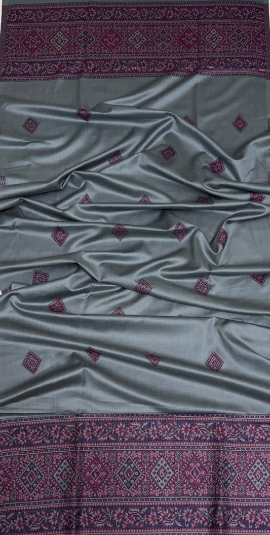 Pashmina Peach With Grey Suit Fabric/ Winter Suits