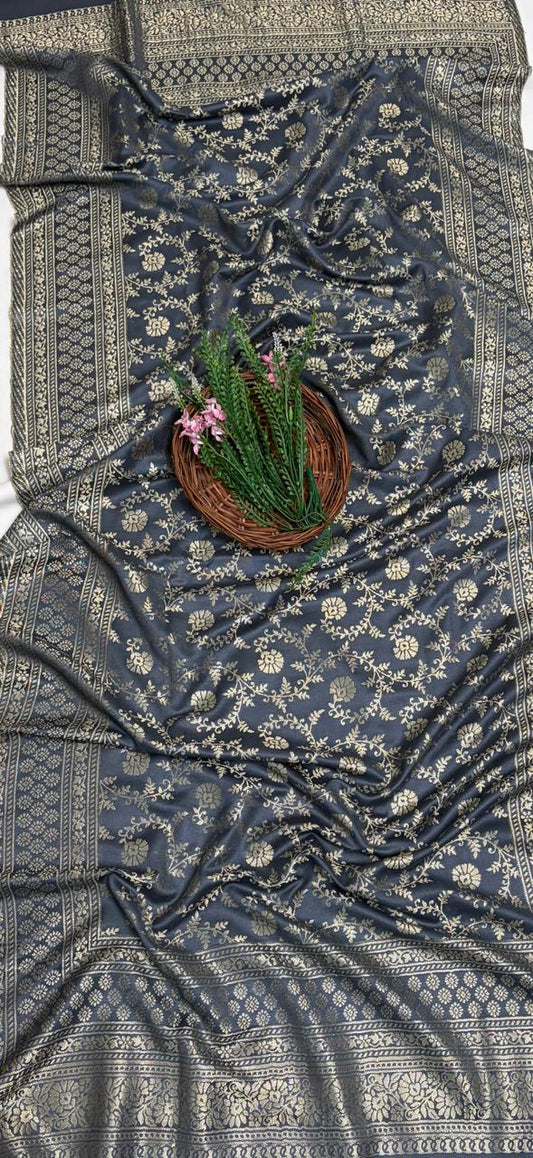 Pashmina Navy Blue With Grey Suit Fabric/ Winter Suits