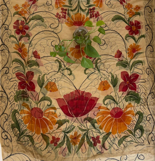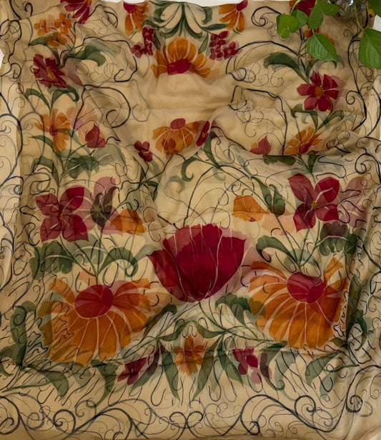 चिनॉन क्रेप मस्टर्ड सूट फैब्रिक / फूलों का घर