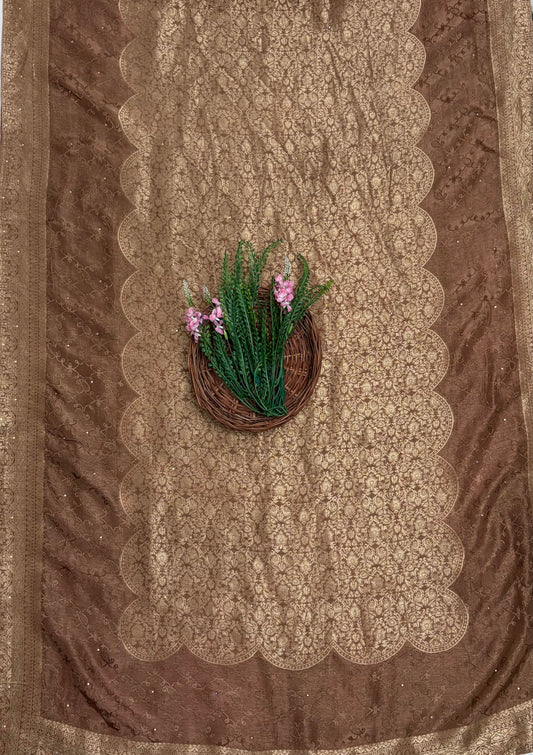 चिनॉन क्रेप ग्रे सूट फैब्रिक / फूलों का घर